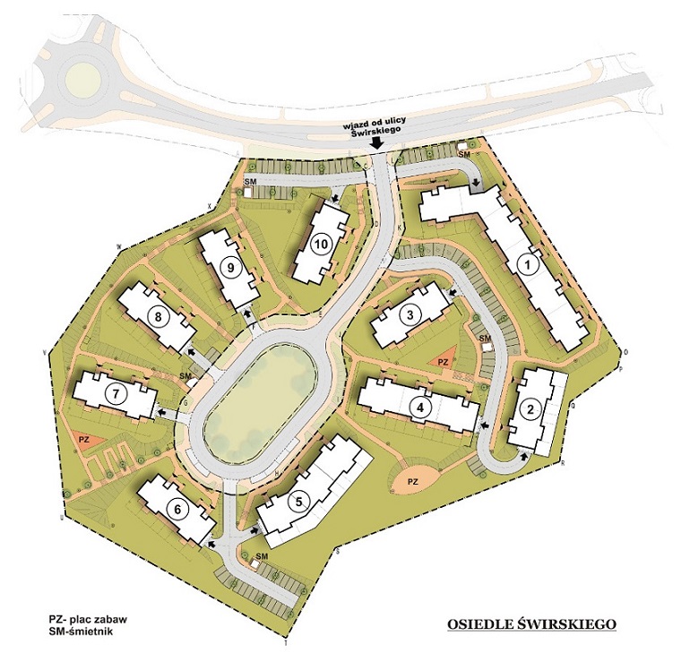 Projekt osiedla domów jednorodzinnych w Różynach.